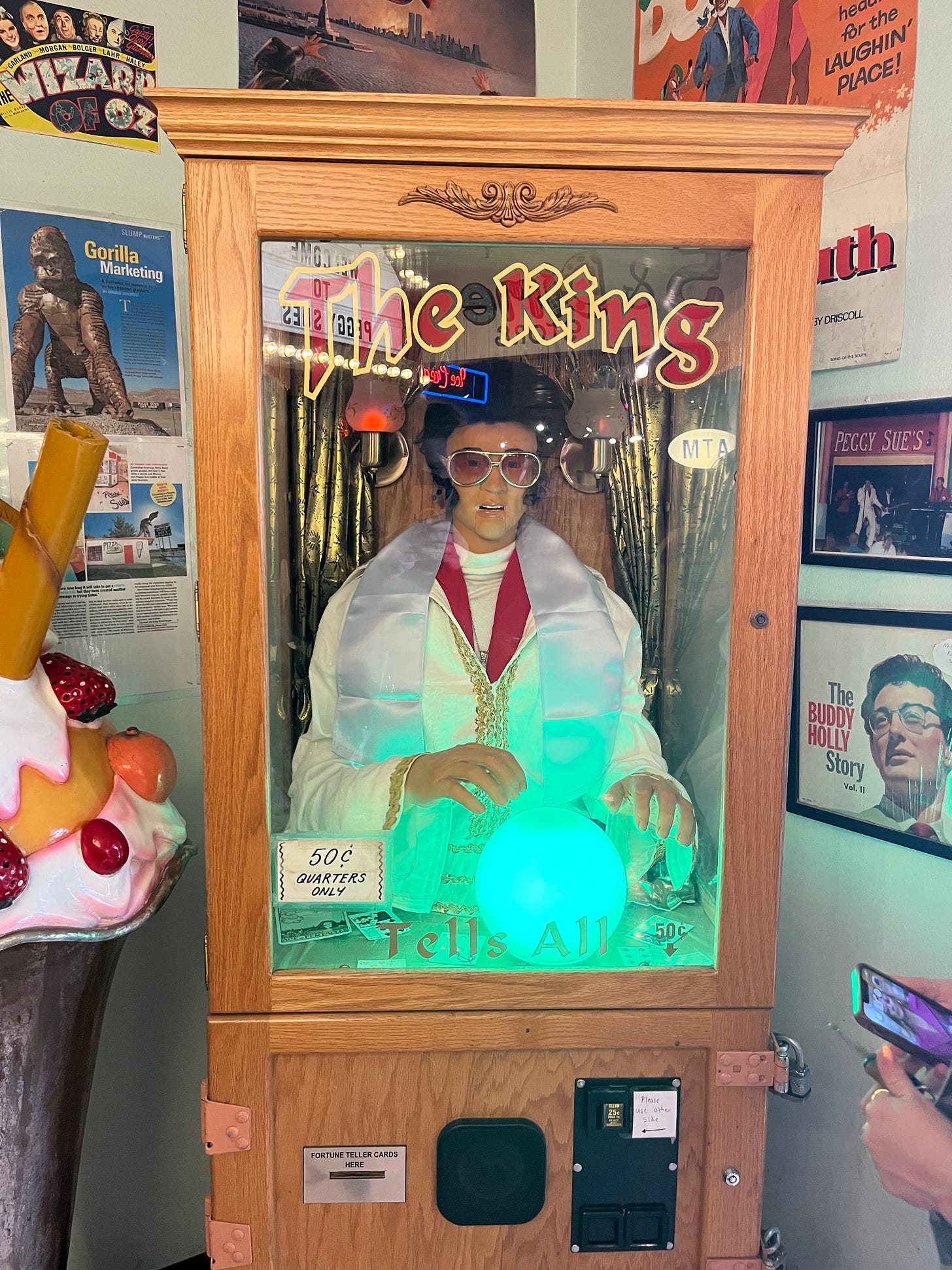It was always strange, as I was never really familiar with him. Maybe the coping mechanisms that got me through my suicidal years didn’t work anymore (or was this an antidepressant side effect?) Maybe this was my misplaced cultural Catholicism yearning for something unknowable and divine. Yes, divine. As the American Idea is re-evaluated and rebranded around us all, our national gods are too. He is one of them, alongside the strange company of certain presidents (Washington, Lincoln, Theodore Roosevelt), Marilyn Monroe, and Michael Jackson. In our usual American extravagance, our national pantheon is both cultural export and consumer good. This comes at the cost of their humanity, as fame requires human sacrifice to be assimilated totally into the national and global milieu. Because of his godhood, I never knew Elvis Aaron Presley as a person, just a Mississippi boy born into poverty after his stillborn twin. All I knew was a shallow memetic collage that was central to the second 1950s revival that coincided with my childhood, no more than an empty suit full of hound dogs and peanut butter and banana sandwiches. But even at his most diluted, he is as the bewildering Mojo Nixon song accurately proclaims. Even when intentionally excluded from my childhood musical upbringing (my parents are not fans), he is the unavoidable warp of our cultural fabric. He may have been a washed-up has-been when my parents honed their music tastes, but his pompadours and flamboyant outfits were central to The Smiths and The Clash’s visual brand. After all, a young Declan Patrick MacManus, my mother’s favorite musician for decades, did not choose the stage name Buddy or Carl Costello. He was always there, I just couldn’t see him. Not yet, at least.